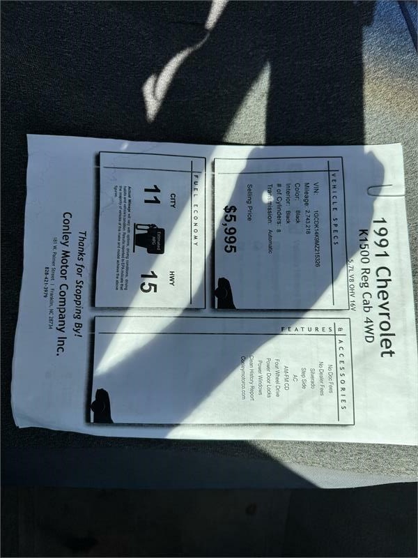 Conley Motor Company Inc. attempts to provide accurate information on the automobile listed above. The actual equipment may vary. Please confirm all vehicle options, accessories and prices with a sales associate to assure accuracy. This information is provided without representations or warranties of any kind, either expressed or implied. Prices do not include additional fees such as government fees and taxes, title and registration fees, finance charges, dealer document preparation fees, and emission testing