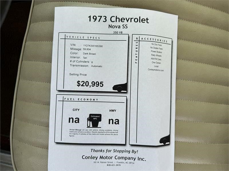1973 Chevrolet Nova SS Local One Owner 350V8 Low Miles!