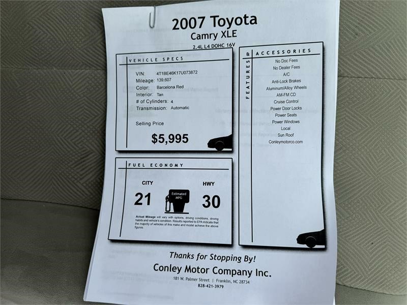 Toyota Camry XLE Sedan Auto AC Sun Roof Local Good Car!