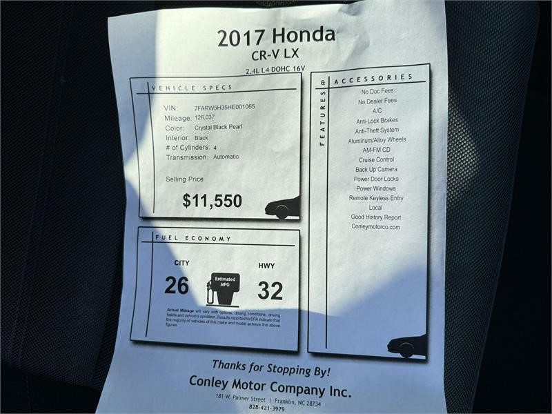 Conley Motor Company Inc. attempts to provide accurate information on the automobile listed above. The actual equipment may vary. Please confirm all vehicle options, accessories and prices with a sales associate to assure accuracy. This information is provided without representations or warranties of any kind, either expressed or implied. Prices do not include additional fees such as government fees and taxes, title and registration fees, finance charges, dealer document preparation fees, and emission testing
