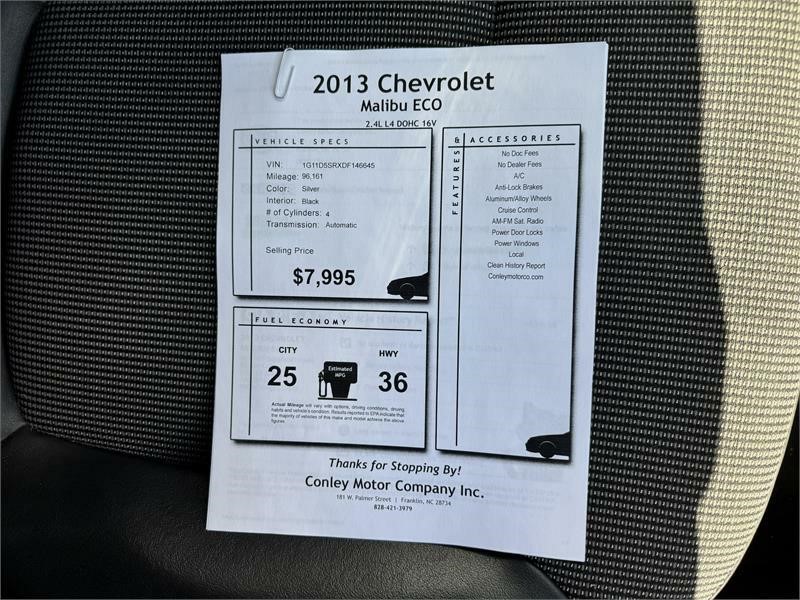 Conley Motor Company Inc. attempts to provide accurate information on the automobile listed above. The actual equipment may vary. Please confirm all vehicle options, accessories and prices with a sales associate to assure accuracy. This information is provided without representations or warranties of any kind, either expressed or implied. Prices do not include additional fees such as government fees and taxes, title and registration fees, finance charges, dealer document preparation fees, and emission testing