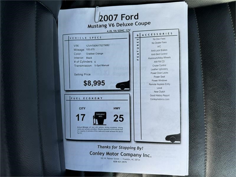 Conley Motor Company Inc. attempts to provide accurate information on the automobile listed above. The actual equipment may vary. Please confirm all vehicle options, accessories and prices with a sales associate to assure accuracy. This information is provided without representations or warranties of any kind, either expressed or implied. Prices do not include additional fees such as government fees and taxes, title and registration fees, finance charges, dealer document preparation fees, and emission testing