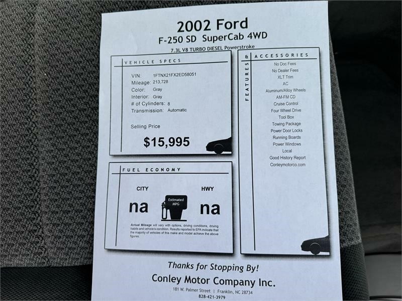 Conley Motor Company Inc. attempts to provide accurate information on the automobile listed above. The actual equipment may vary. Please confirm all vehicle options, accessories and prices with a sales associate to assure accuracy. This information is provided without representations or warranties of any kind, either expressed or implied. Prices do not include additional fees such as government fees and taxes, title and registration fees, finance charges, dealer document preparation fees, and emission testing