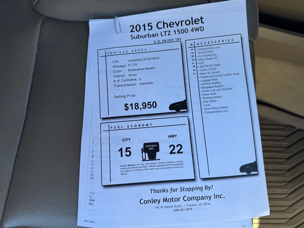 Conley Motor Company Inc. attempts to provide accurate information on the automobile listed above. The actual equipment may vary. Please confirm all vehicle options, accessories and prices with a sales associate to assure accuracy. This information is provided without representations or warranties of any kind, either expressed or implied. Prices do not include additional fees such as government fees and taxes, title and registration fees, finance charges, dealer document preparation fees, and emission testing